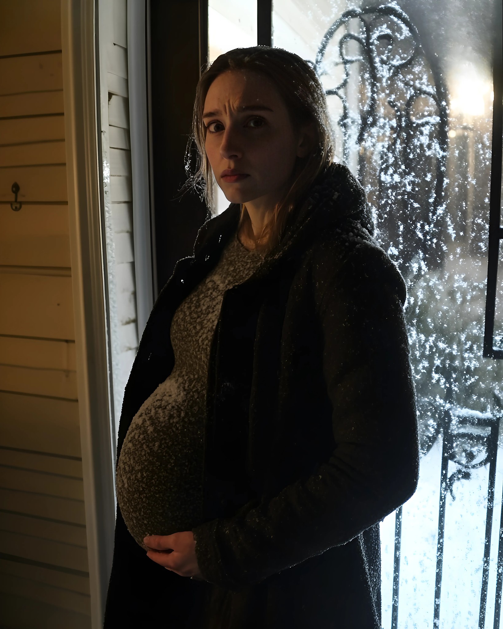 O femeie însărcinată stătea în sufragerie, ținându-și cu o mână burta. Era tânără, probabil în jur de douăzeci de ani, cu pielea curată și ochii strălucitori, care s-au mărit când m-a văzut.