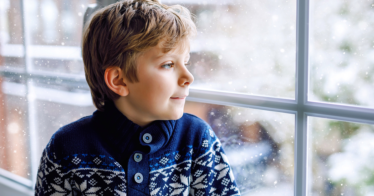 Acolo era el, un băiețel tăcut, de vreo șapte sau opt ani. Stătea lipit de fereastră, cu haina subțire strâns înfășurată în jurul lui. Rucsacul zăcea pe podea, la picioarele lui, neatins.
