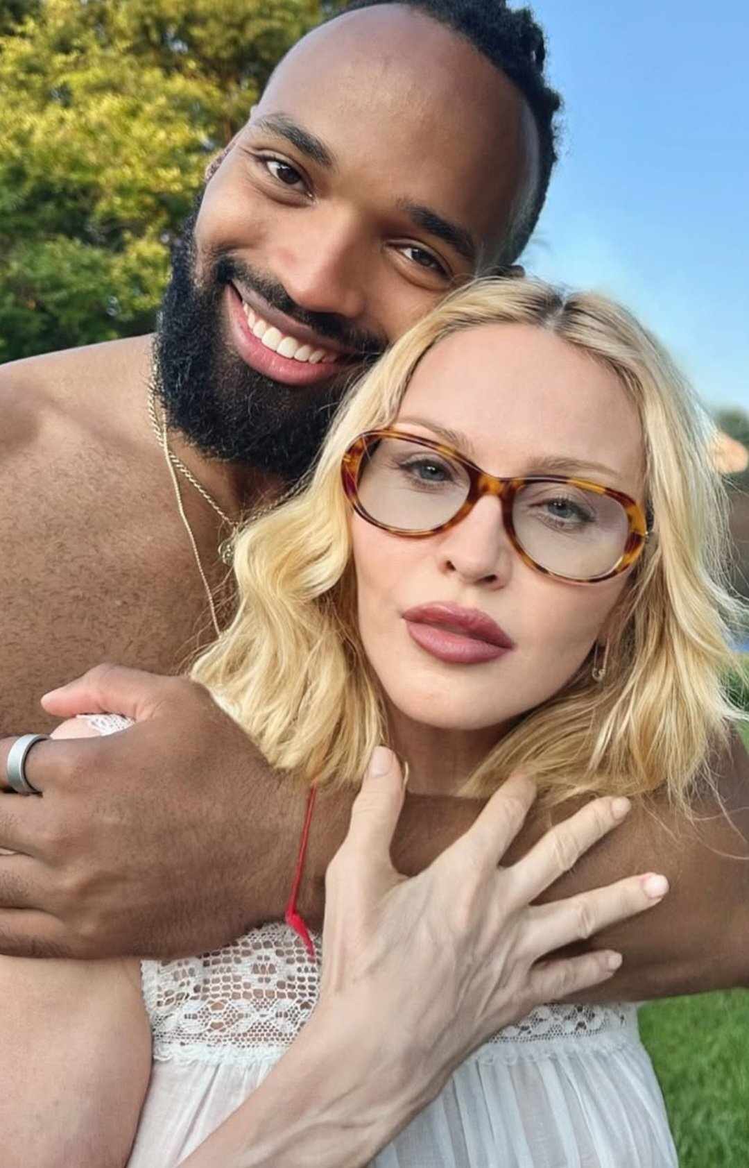Madonna, în vârstă de 66 de ani, nu-și ascunde fericirea în relația cu un bărbat cu 37 de ani mai tânăr decât ea. Recent, cântăreața a arătat un inel cu un diamant mare, sugerând o posibilă nuntă. De asemenea, ea a postat o fotografie a partenerului său, care se relaxa fără tricou, ceea ce a stârnit invidia multor femei.