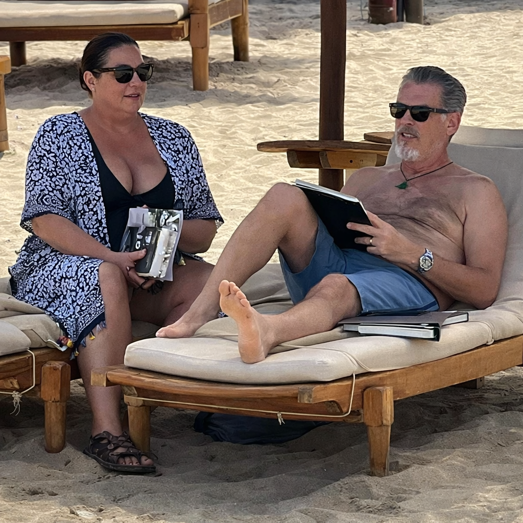 Brosnan și soția sa, în vârstă de 53 de ani, au fost văzuți în Sardinia, în vacanță. Actorul, cunoscut