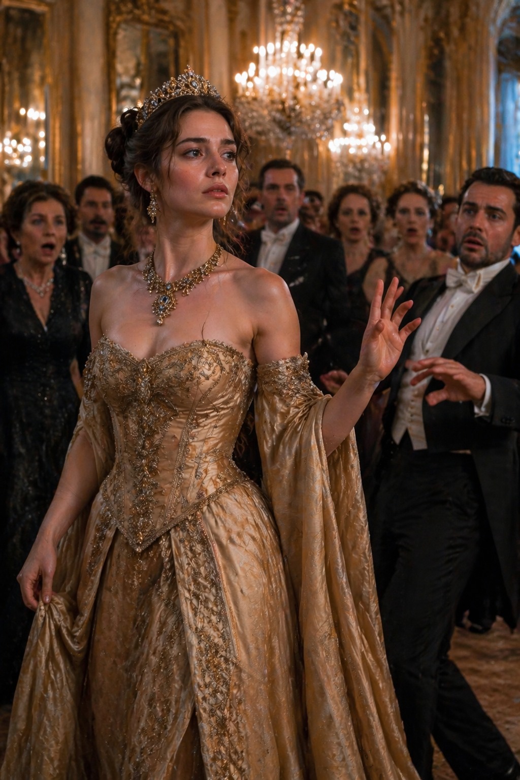 Într-un hol somptuos, luminile aurii ale candelabrelor dansau peste pereți, în timp ce o muzică discretă completa atmosfera unei reuniuni exclusiviste. Totul părea impecabil, ordonat, fiecare detaliu pus la punct pentru a impresiona.