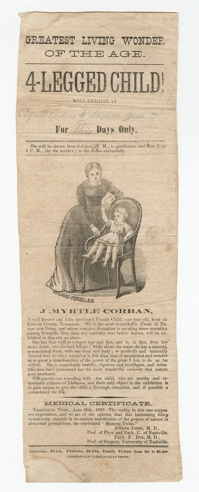 Myrtle Corbin avea o boală foarte ciudată. De fapt, ea s-a născut cu patru picioare. Totuși, după ce au văzut fotografia copilului ei, mulți s-au întrebat de ce s-a întâmplat asta.