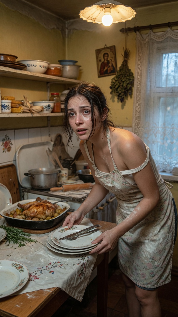 Se ridică și începu să strângă masa. Resturile zburau în coș — nimeni nu le va mânca. Farfuriile clănțăneau în chiuvetă.