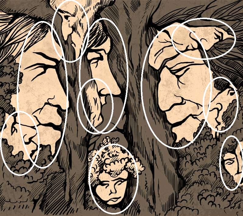 Ei bine, acum să trecem la test, pentru a ne convinge de acest lucru. Aveți 20 de secunde să priviți cu atenție imaginea. În primele secunde pare că este o imagine obișnuită, în care sunt reprezentate copaci. Dar dacă priviți mai atent ramurile sinuoase, veți vedea chipuri umane. Câte ați reușit să observați?