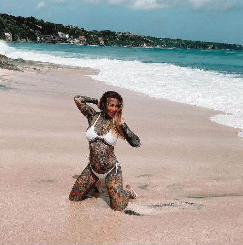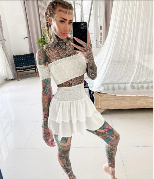 Cu ceva timp în urmă, frumoasei prezentate i-a devenit destul de interesant să afle cum ar arăta fără tatuajele de pe corp, așa că le-a acoperit cu fond de ten și a publicat rezultatul pe internet. Este uimitor cum reușește fondul de ten să ascundă tatuajele, pentru că, fără ajutorul lui, ar fi practic imposibil să scapi de desenele de pe corp! După ce fata a împărtășit totuși fanilor o fotografie în care pielea ei pare destul de curată, ea a întrebat publicul dacă ar trebui să-și șteargă tatuajele.