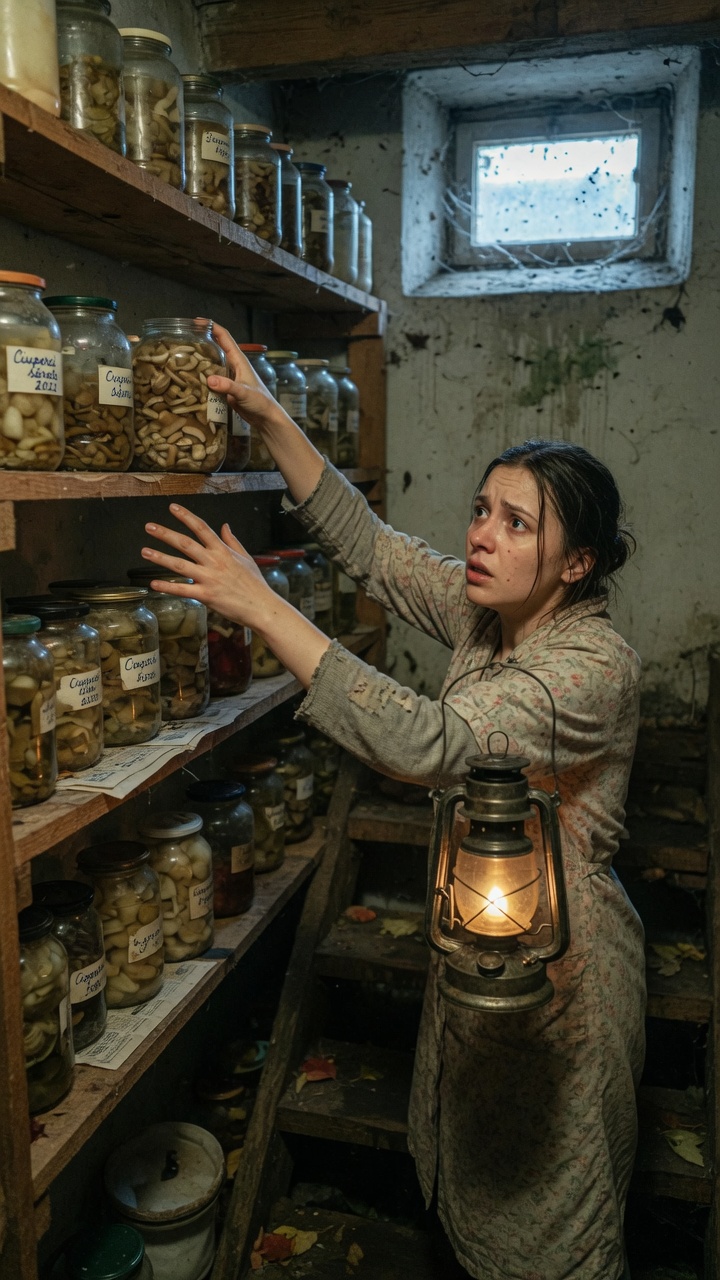 Lumina lanternei dezvăluia rafturi nesfârșite pline cu borcane: castraveți, roșii, compoturi. Totul în ordine perfectă. La fel de perfectă ca fațada familiei lor „fericite”.